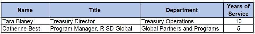 Staff Years of Service Milestones: December 2025