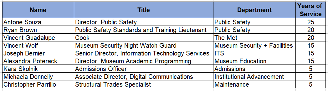 9 staff celebrated a service milestone at RISD in March 2026. Thank you for your years of service!
